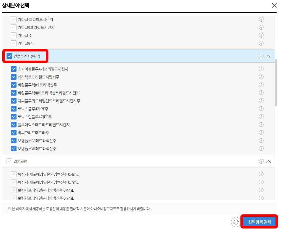◆ 상세분야선택에서 알아보고자 하는 비급여항목 선택 - 선택항목검색